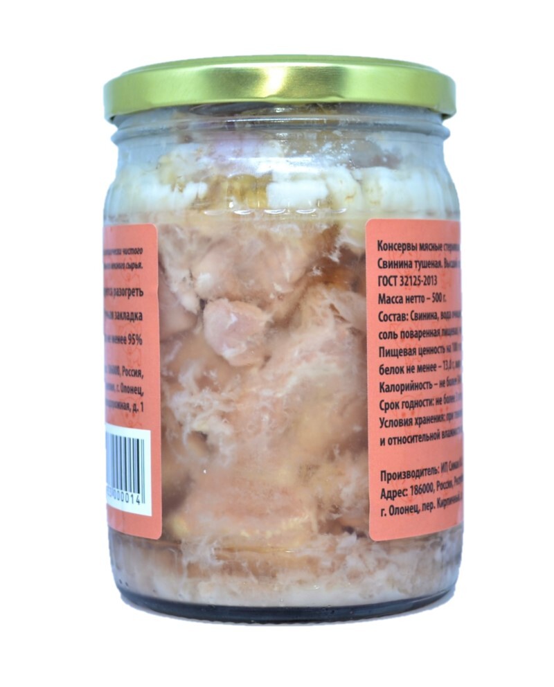 - Состав Свинина, вода очищенная питьевая, соль поваренная пищевая, черный перец, лавровый лист.