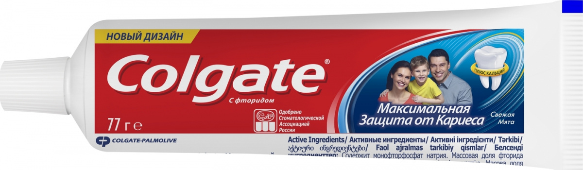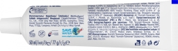 • Состав: карбонат кальция вода сорбитол гидратированный диоксид кремния лаурилсульфат натрия монофторфосфат натрия 1,1% (1450 ppm F-) вкусовая добавка натриевая соль КМЦ алюмосиликат магния карбонат натрия бензиловый спирт сахаринат натрия бикарбонат натрия d-лимонен краситель CI 74260