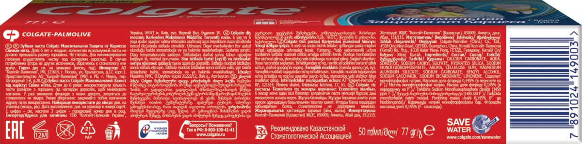 Colgate Зубная паста Максимальная защита от кариеса Свежая мята 50 мл