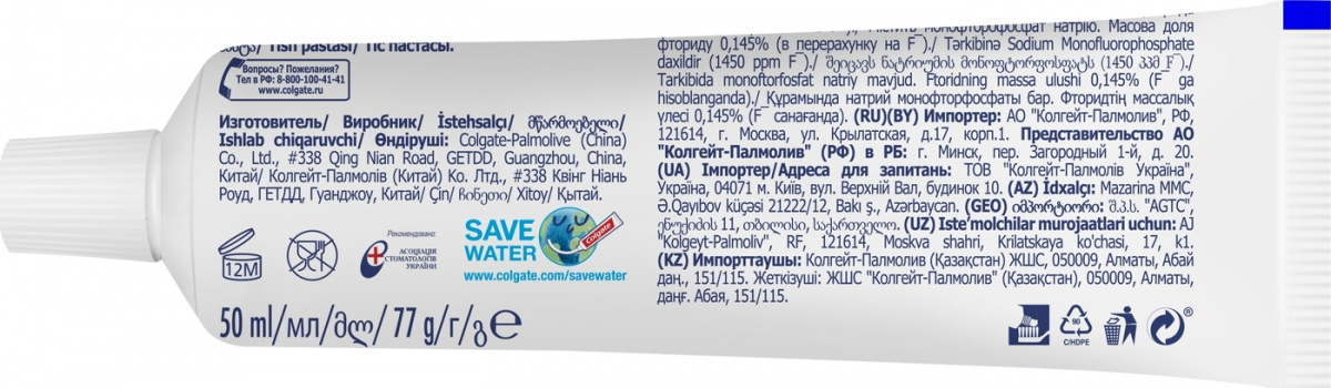• Способ применения: Чистить зубы 2 раза в день, в течение 3-х минут, используя количество зубной пасты размером с горошину (примерно 1,0 г). Не рекомендована детям младше 6 лет. Не глотать. При использовании фторсодержащих добавок проконсультироваться у стоматолога.