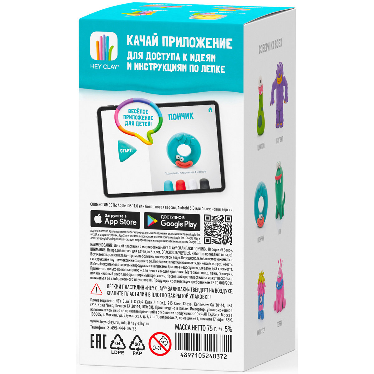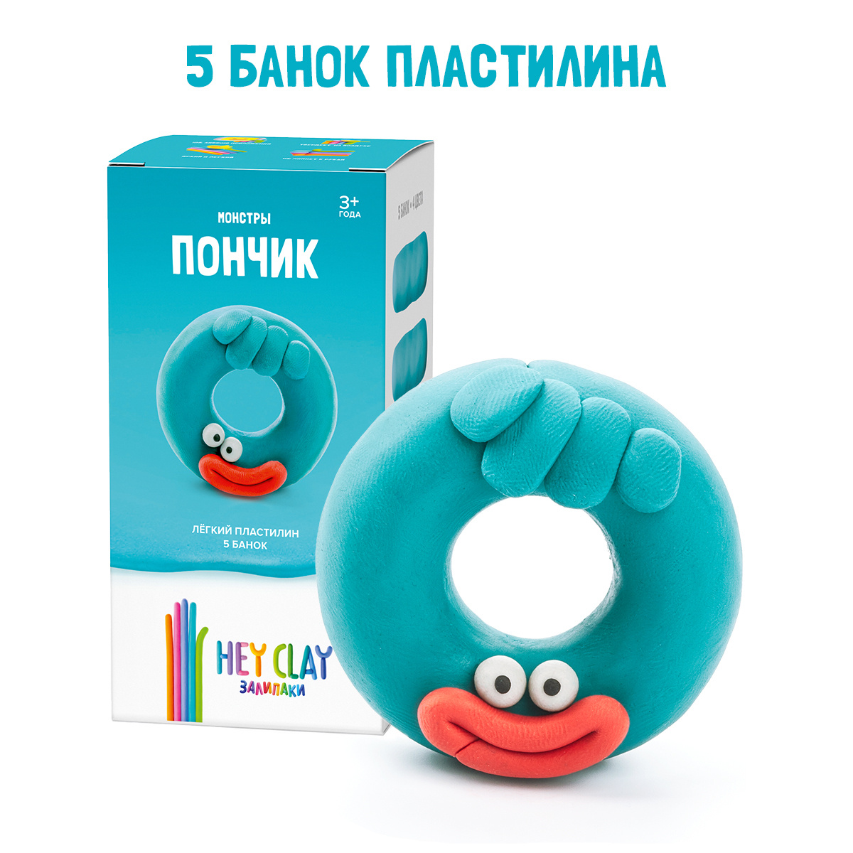 Легкий пластилин для лепки "Hey Clay Залипаки" Пончик (5 банок)