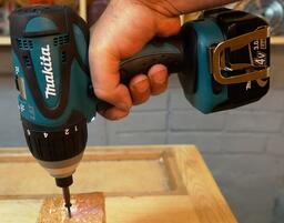 Переключение между режимами осуществляется очень быстро и удобно. Шуруповёрт является полностью мобильным: он оборудован очень качественной аккумуляторной батареей типа Li-lon ёмкостью 3,0 Ач. На выходе он выдаёт напряжение 14,4 В, полностью заряжается всего за 60 минут. АКБ прямоугольной формы удобно крепится к нижней части рукоятки, и служит для балансировки всей конструкции. В любой момент батарея может быть отсоединена с помощью нажатия всего на одну кнопку.