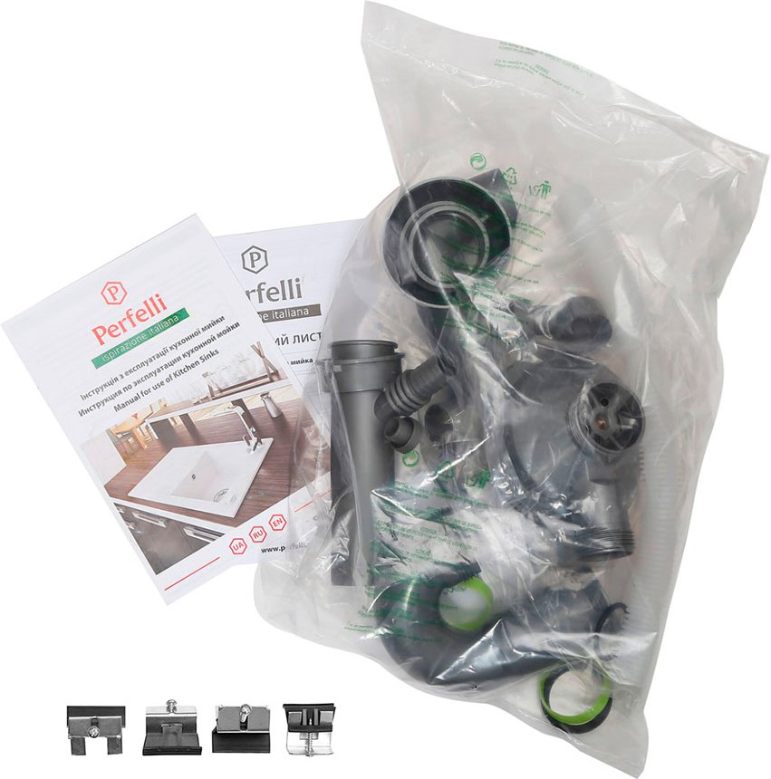 • Комплектация корзинчатый вентиль, перелив, сифон, фиксирующие зажимы, отводная арматура