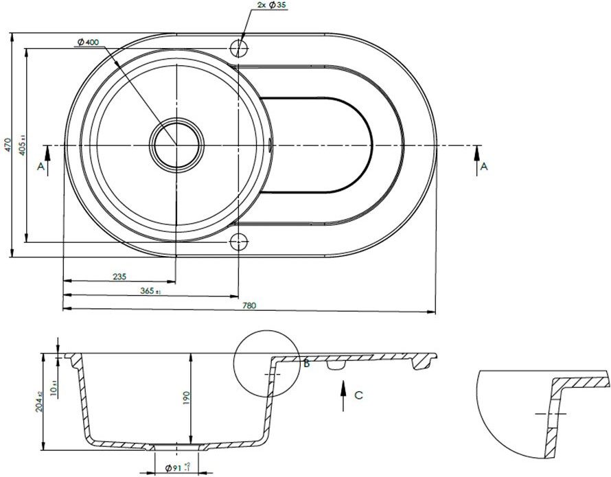 • Тип монтажа над столешницей (врезная)