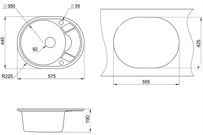 - Комплектация корзинчатый вентиль, перелив, сифон, отводная арматура