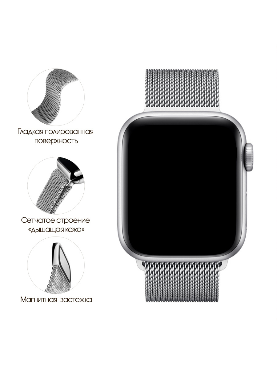Металлический ремешок для Apple Watch series 1-5, 42-44 mm Миланская петля, Серебро