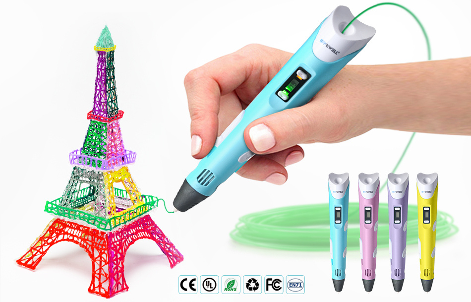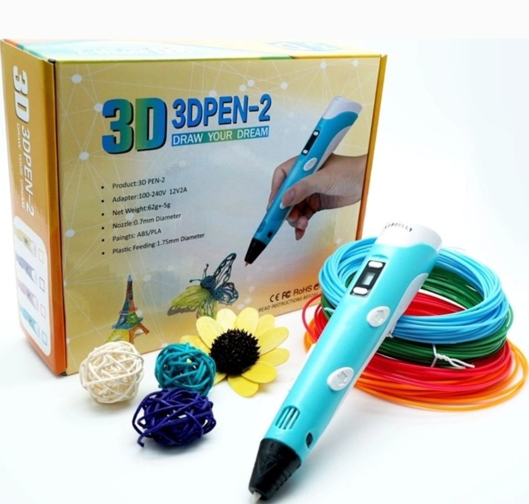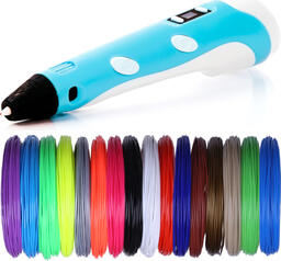 3D ручка + 18 рулонов PLA пластика по 10 м для 3д ручек в комплекте, набор для детей, голубой