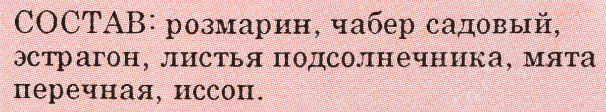 - Ингредиенты приправы, специи Иссоп, Мята перечная, Розмарин, Чабер садовый, Эстрагон