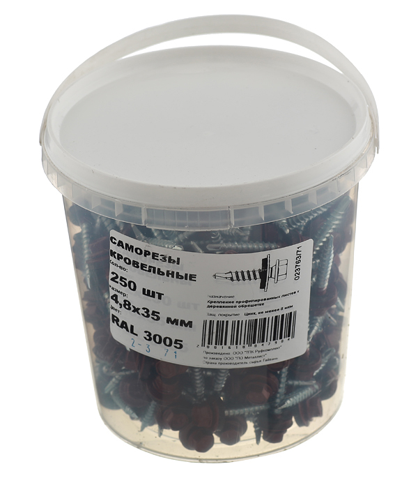 Саморезы кровельные с буром 35х4,8 мм красное вино RAL 3005 (250 шт) сталь Тайвань