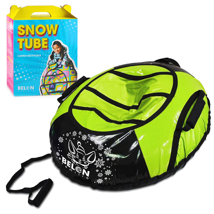 Тюбинг BELON Санки-ватрушка надувные, серия "Спорт vip", 85см, черно-салатовая