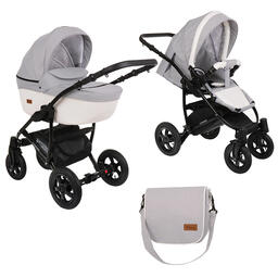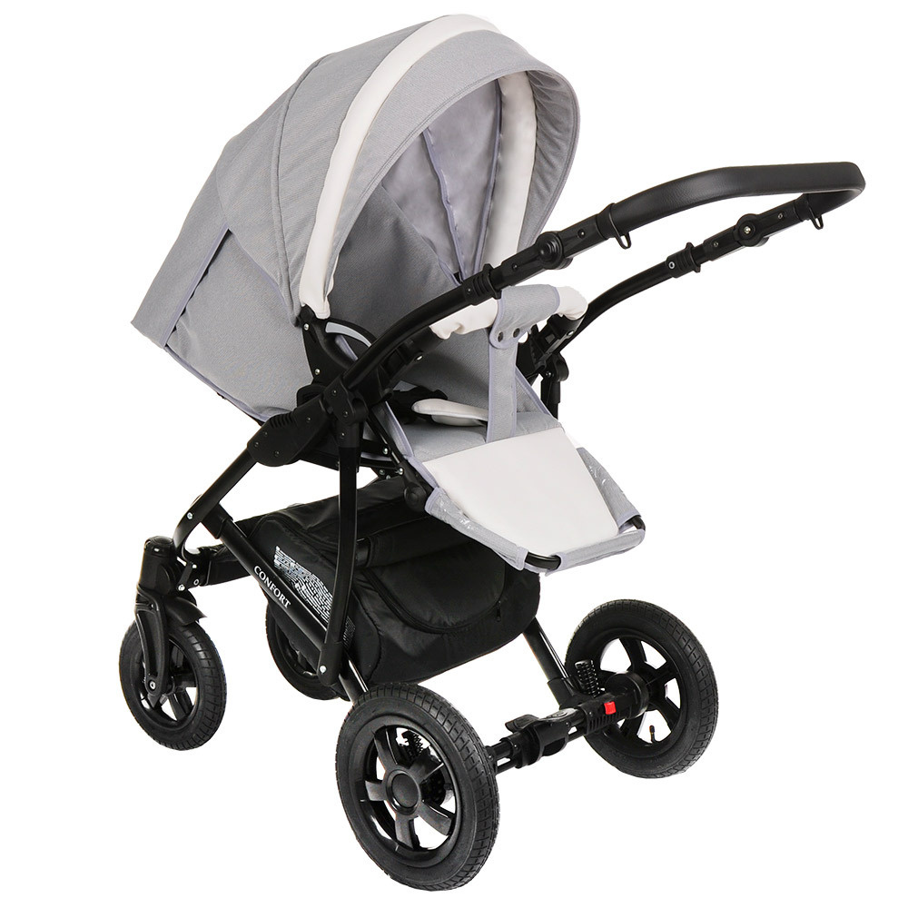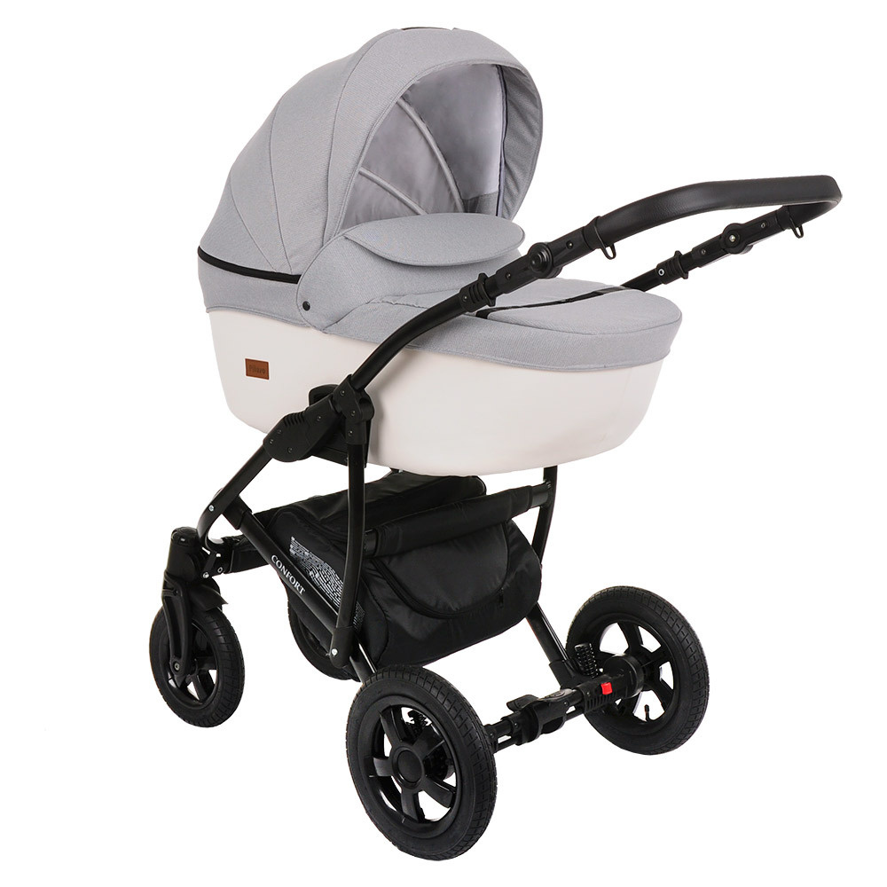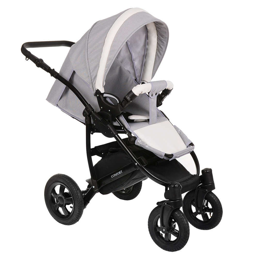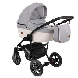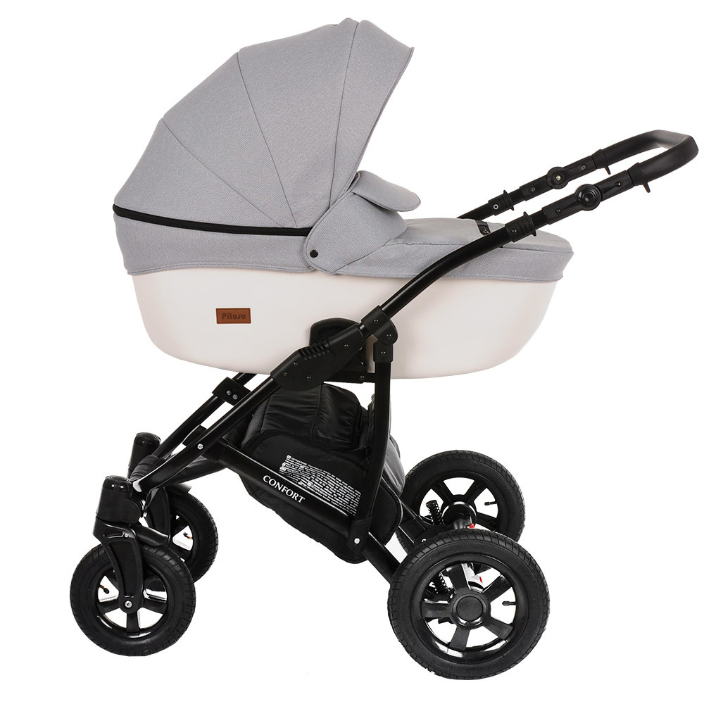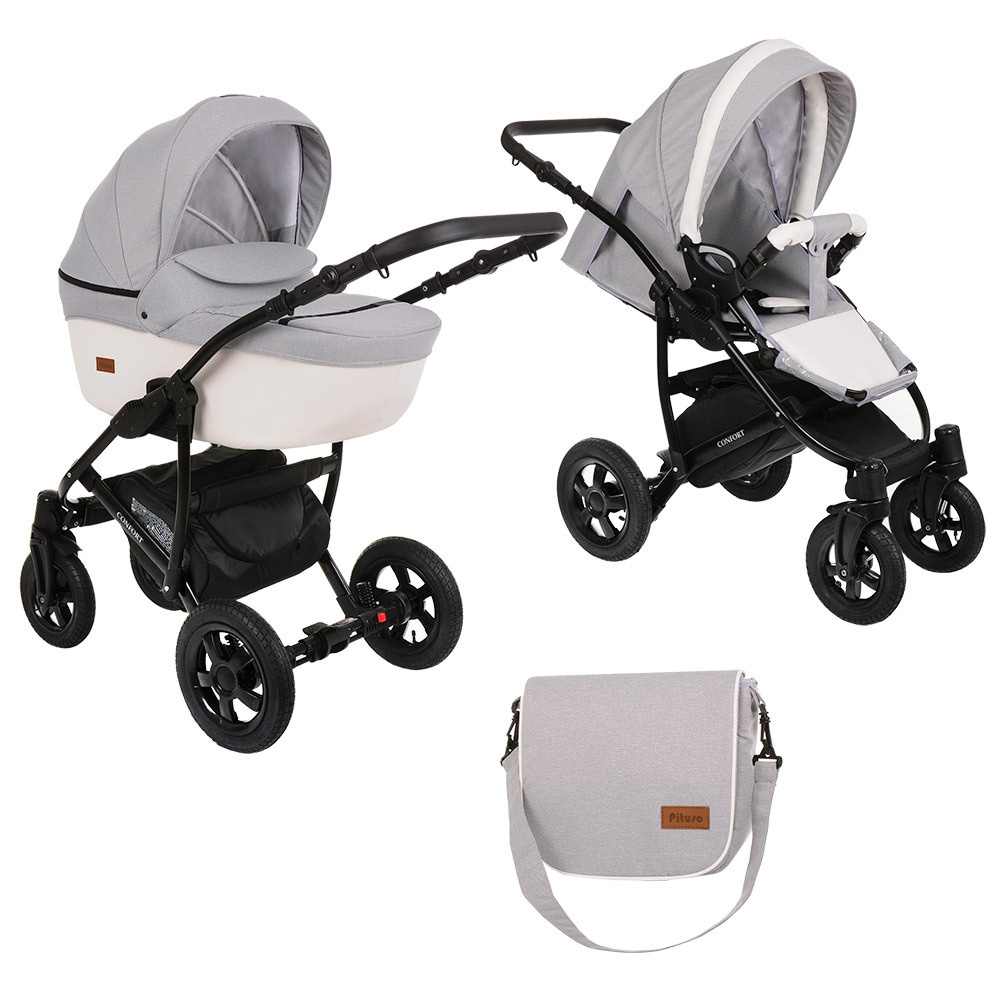 Коляска 2 в 1 Pituso Confort 2020 Серый+Кожа Белый/ Рама Черная