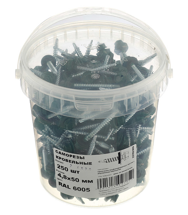 Саморезы кровельные с буром 50х4,8 мм зеленые RAL 6005 (250 шт) сталь Тайвань