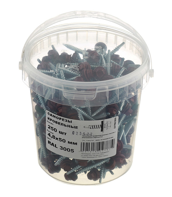 Саморезы кровельные с буром 50х4,8 мм красное вино RAL 3005 (250 шт) сталь Тайвань