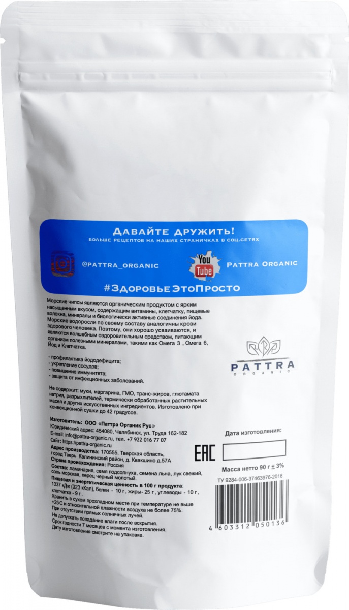 - Состав ламинария, семя подсолнуха, семена льна, чеснок свежий, соль морская, перец черный молотый.