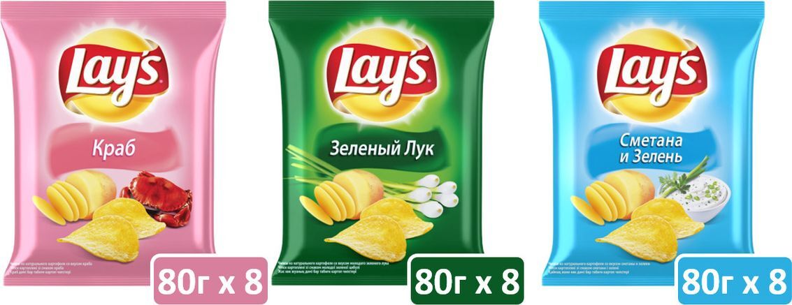 - Состав: картофель, растительное масло, ароматизатор (луковый порошок, соль, сахар, порошок молочной сыворотки, усилители вкуса и аромата (глутамат натрия 1-замещенный, 5’-рибонуклеотиды натрия 2-замещенные), сухое обезжиренное молоко, лактоза (из молока), вкусоароматические вещества, сырный порошок, регулятор кислотности (лимонная кислота), красители (аннато, экстракт паприки), чесночный порошок);картофель, растительное масло, ароматизатор (соль, вкусоароматические вещества (луковый порошок, листья петрушки, чесночный порошок, сырный порошок, сметанный порошок), сухая молочная сыворотка, сахароза, усилитель вкуса и аромата (глутамат натрия 1-замещенный));Картофель, растительное масло, ароматизатор (сухая молочная сыворотка, соль, сахар, усилители вкуса и аромата (глутамат натрия 1-замещенный, 5’-гуанилат натрия 2-замещенный, 5’-инозинат натрия 2-замещенный), вкусоароматические вещества, порошок томата, сухое обезжиренное молоко, специи, термический технологический ароматизатор, красители (экстракт паприки, сахарный колер III))