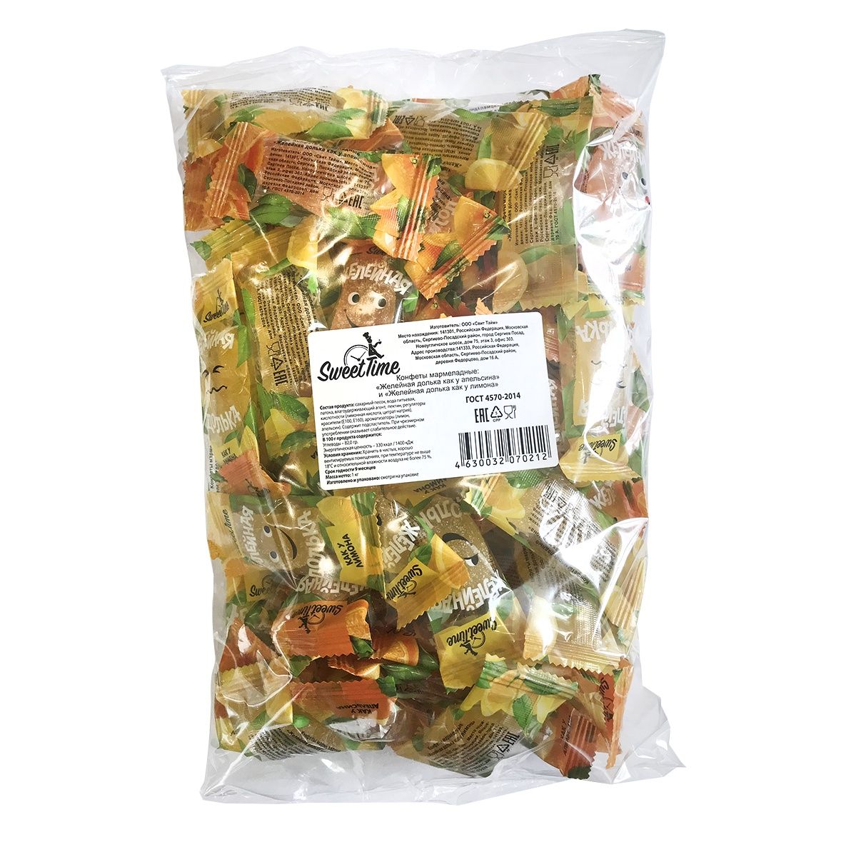 - Состав: Cахарный песок, вода питьевая, патока, влагоудерживающий агент сорбит, желирующий агент пектин, регуляторы кислотности (лимонная кислота, цитрат натрия), ароматизатор апельсин / лимон, краситель Е160. Содержит подсластитель