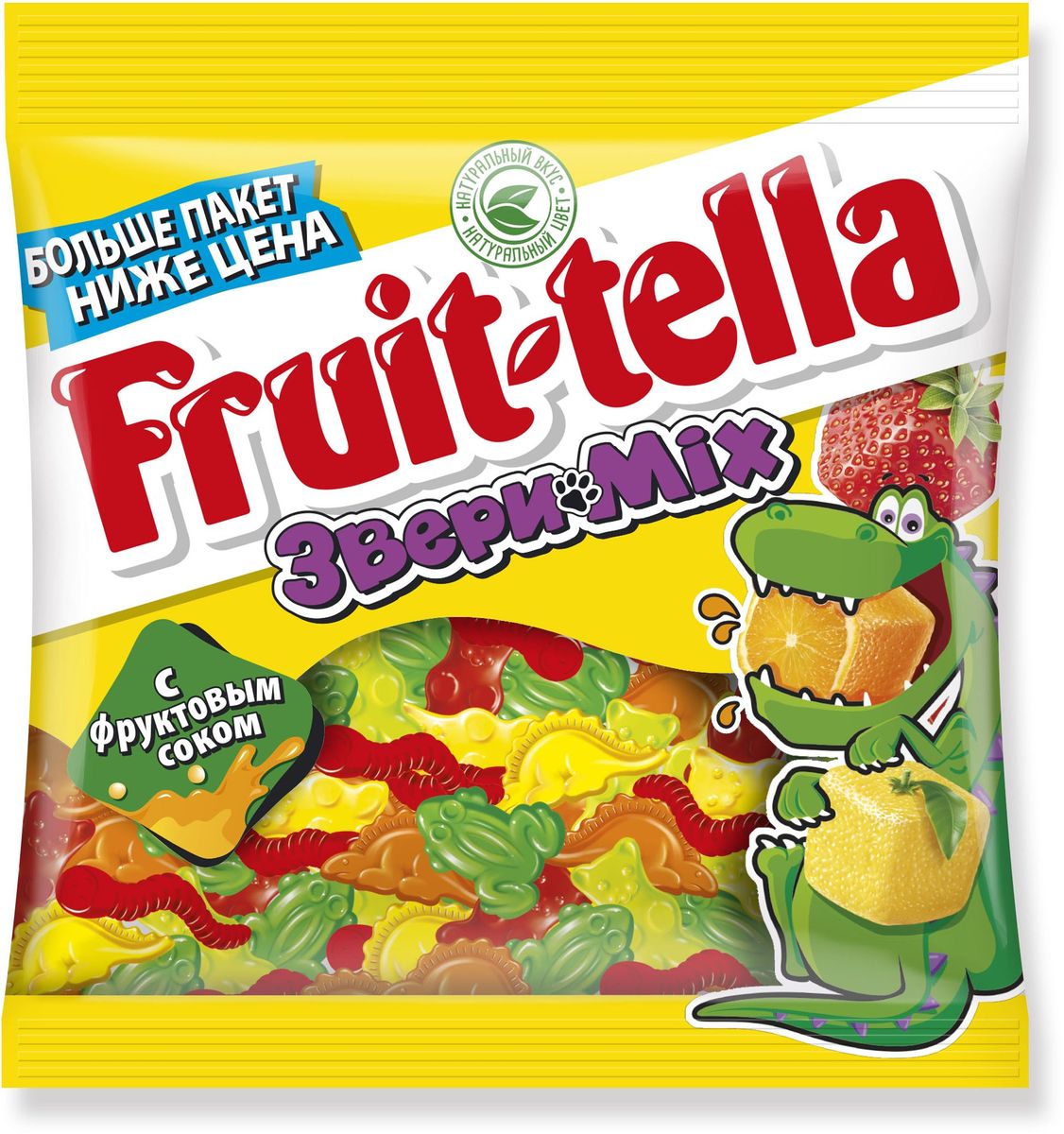 - Состав: Сироп глюкозы, сахар, желатин, концентрированные фруктовые соки (апельсиновый, яблочный, лимонный, малиновый и клубничный), декстроза, лимонная кислота, натуральные ароматизаторы, концентраты (тыква, морковь, спирулина, яблоко, лимон, сафлор, гибискус, редис, томат) глазирователи (карнаубский воск, пчелиный воск)
