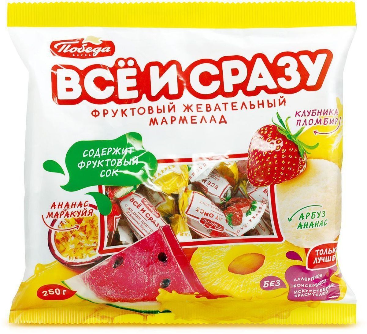 - Состав: Патока, сахар, вода, желатин, желеобразователь-пектин, влагоудерживающая добавка-сорбитный сироп, регулятор кислотности-кислота лимонная, глазирователь (растительное масло, карнаубский воск), фруктовый сок, молочный жир, ароматизаторы натуральные (арбуз, ананас, маракуйя, клубника), ароматизатор (пломбир), красители натуральные (кармин, монтекармин, турмерик, паприка, михром белый).