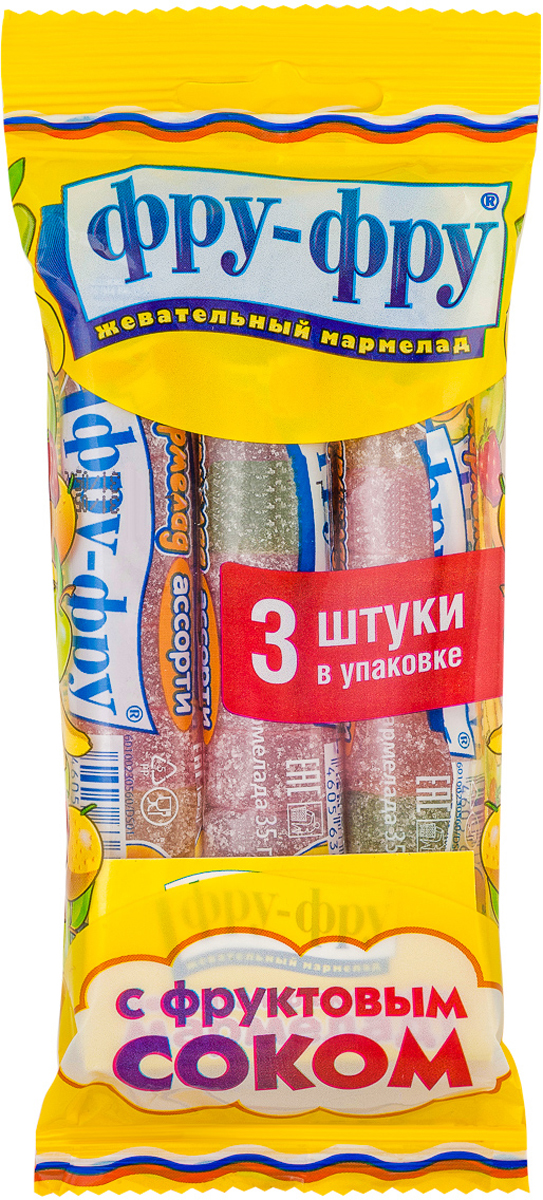 - Состав: сироп глюкозы, сахар, сок яблочный, крахмал кукурузный, желатин пищевой, регулятор кислотности: лимонная кислота; красители: куркумин, кармины, медные комплексы хлорофиллинов; ароматизаторы: яблоко, банан, апельсин, клубника. Не содержит глютен.