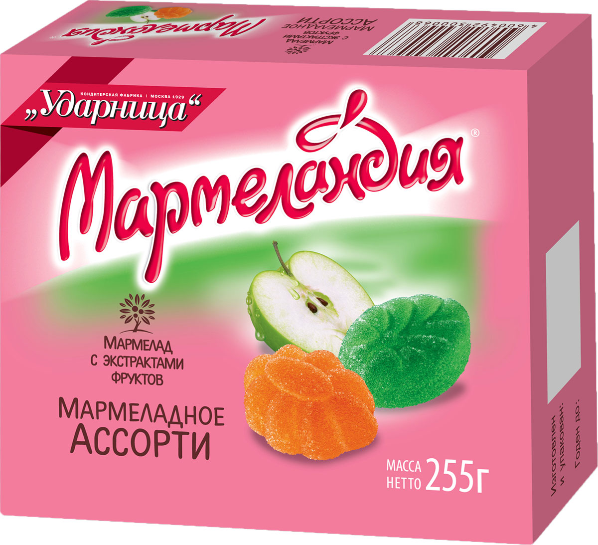 - Состав: Сахар; патока; желирующий агент – пектин; регуляторы кислотности – кислота молочная, кислота яблочная, кислота лимонная, цитрат натрия; экстракты - яблока, лимона, апельсина; ароматизатор с экстрактом малины; ароматизатор; красители натуральные – сок чёрной моркови, экстракт паприки, хлорофиллин, куркумин.