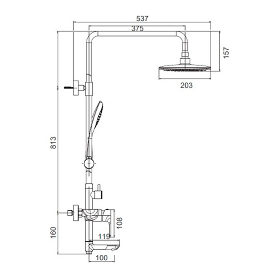 - Диаметр (вылет) верхнего душа 203 мм