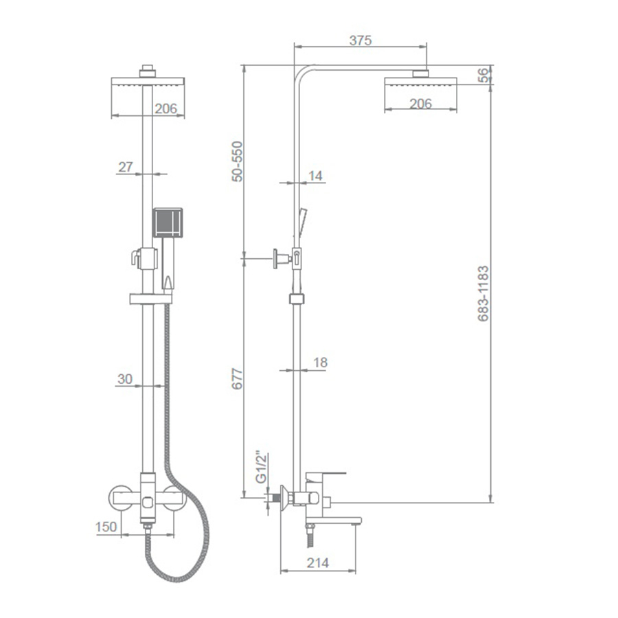 - Ручной душ (душевая лейка) есть, с регулировкой по высоте