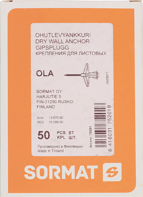 Дюбель для листовых материалов Sormat 4x60 мм нейлон OLA (50 шт.)