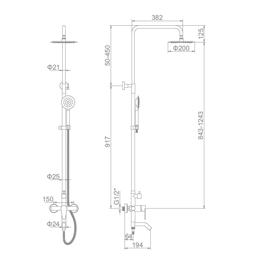 - Ручной душ (душевая лейка) есть, с регулировкой по высоте