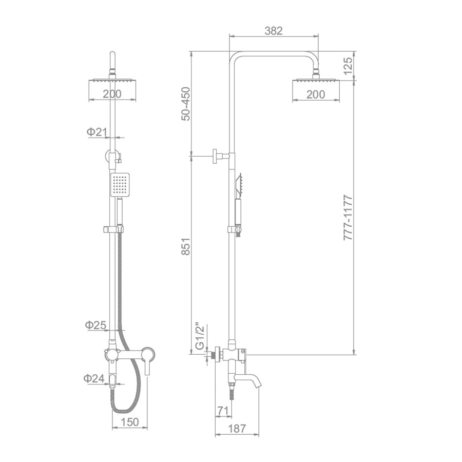 - Форма верхнего душа квадратная