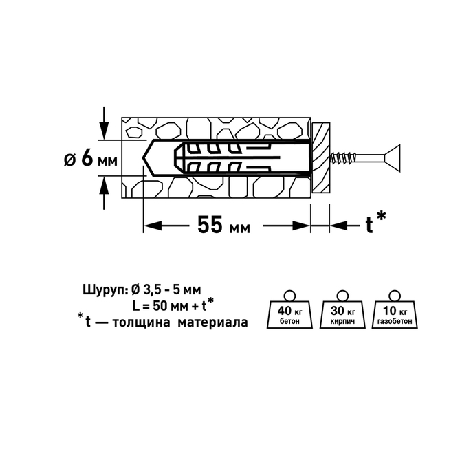 Дюбель Hard-Fix 6х50 нейлон (50 шт.)
