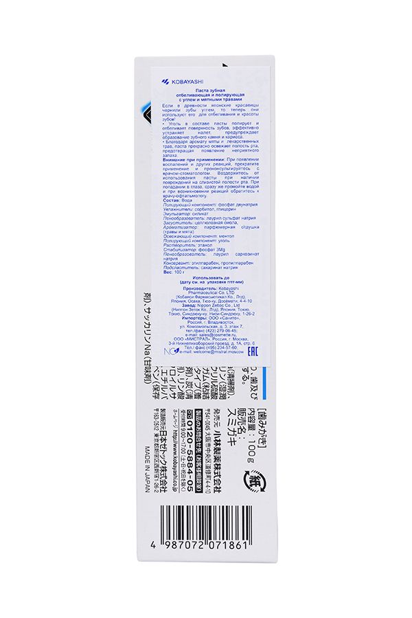 - Состав: Вода Полирующий компонент: фосфат двунатрия Увлажнители: сорбитол, глицерин Эмульгатор: силикат Пенообразователь: лаурил сульфат натрия Загуститель: целлюлозная смола, Ароматизатор: парфюмерная отдушка (травы и мята) Освежающий компонент: ментол Полирующий компонент: уголь Растворитель: этанол Стабилизатор: фосфат 3Mg Пенообразователь: лаурил саркозинат натрия Консервант: этилпарабен, пропилпарабен Подсластитель: сахаринат натрия