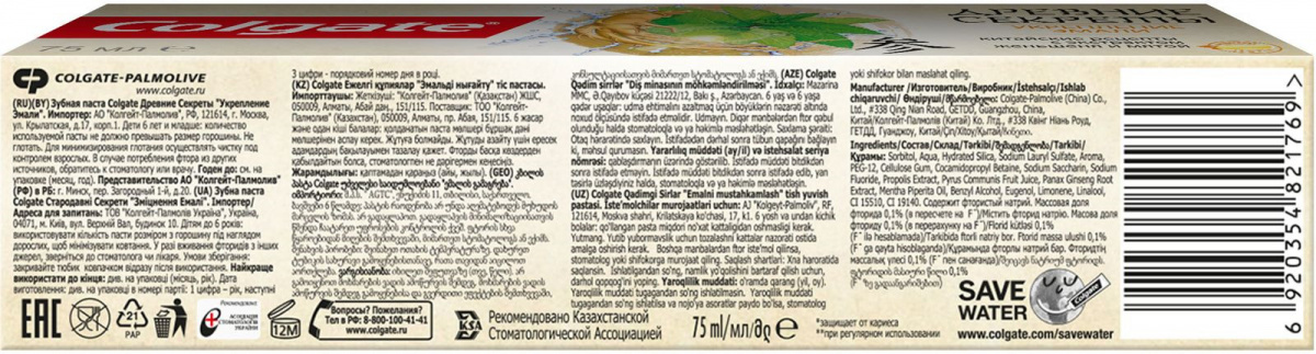 Зубная паста Colgate Древние секреты "Укрепление эмали. Женьшень" с натуральными экстрактами, 75 мл
