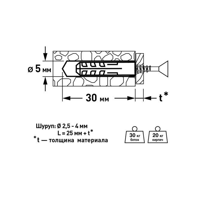 • Диаметр крепежа под дюбель 2.5-4 мм