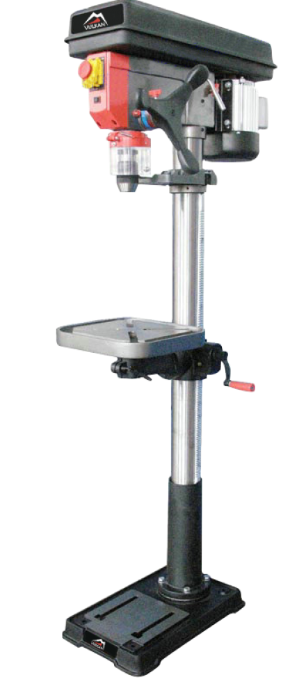 Если в мастерскую нужен мощный сверлильный станок, тогда VLK-20F1 от бренда Vulkan – лучший вариант. Он справляется с выполнением отверстий в любых материалах – пластик, листовой металл, дерево и т.д. Монтируется на пол, поэтому оснащен широким основанием и высокой металлической штангой. Для крепления не нужна столешница, которой и так найдется применение. В результате рабочее помещение не загромождено, а функциональность намного выше.