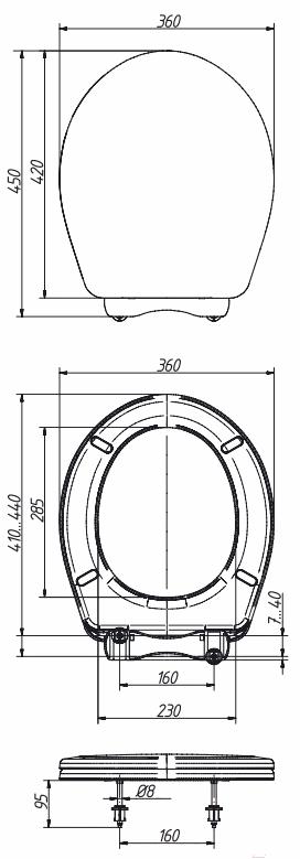Сиденье для унитаза ОРИО К-02 (голубой); Коллекция: К (ОРИО); Материал: полипропилен; Комплектация: крышка-сиденье, ось, опора, винт, шайба, гайка, упор; Ширина: 36 см; Длина: 41;44 см