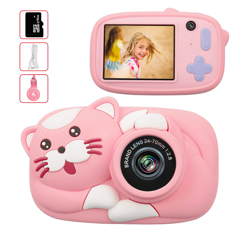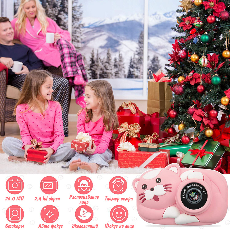 Детский цифровой фотоаппарат с чехлом в виде котенка розовый