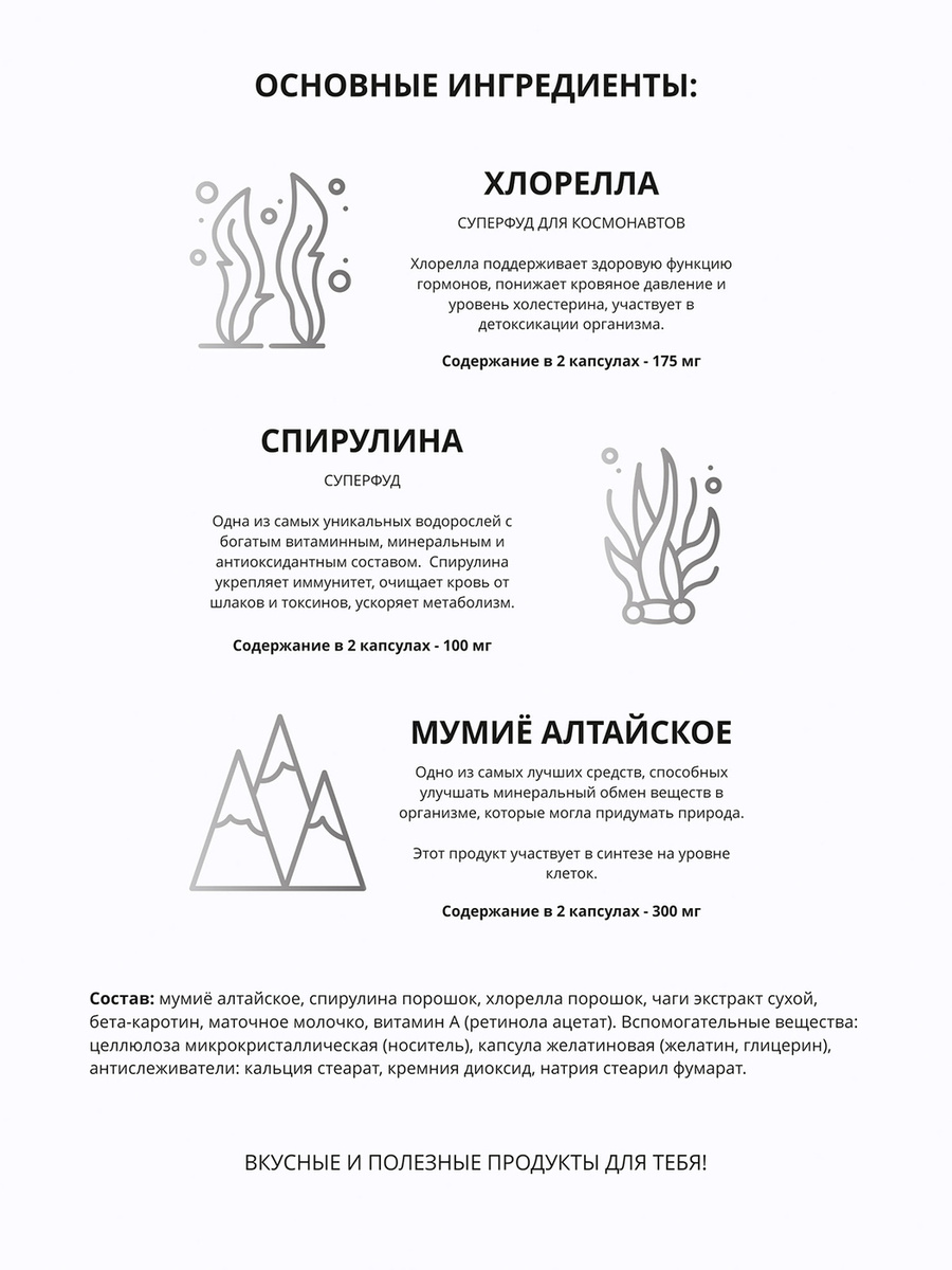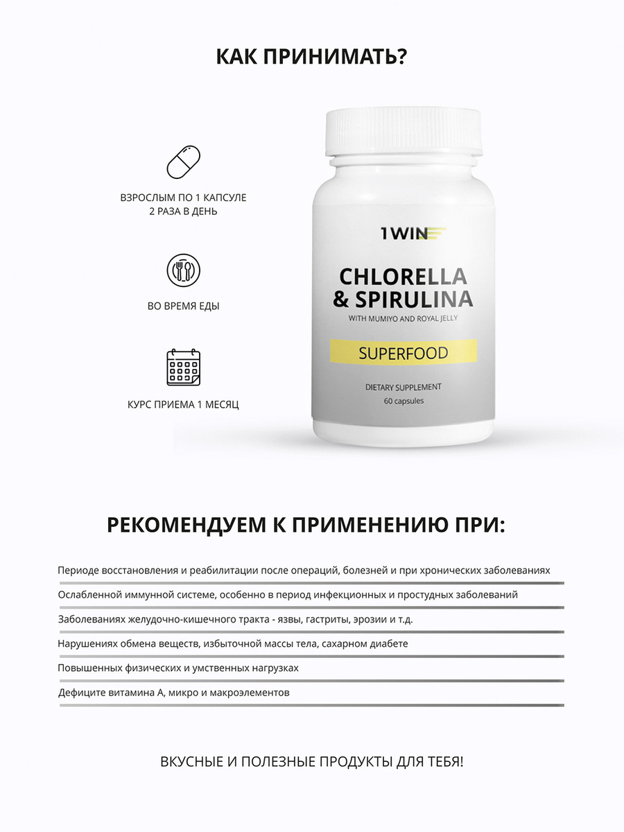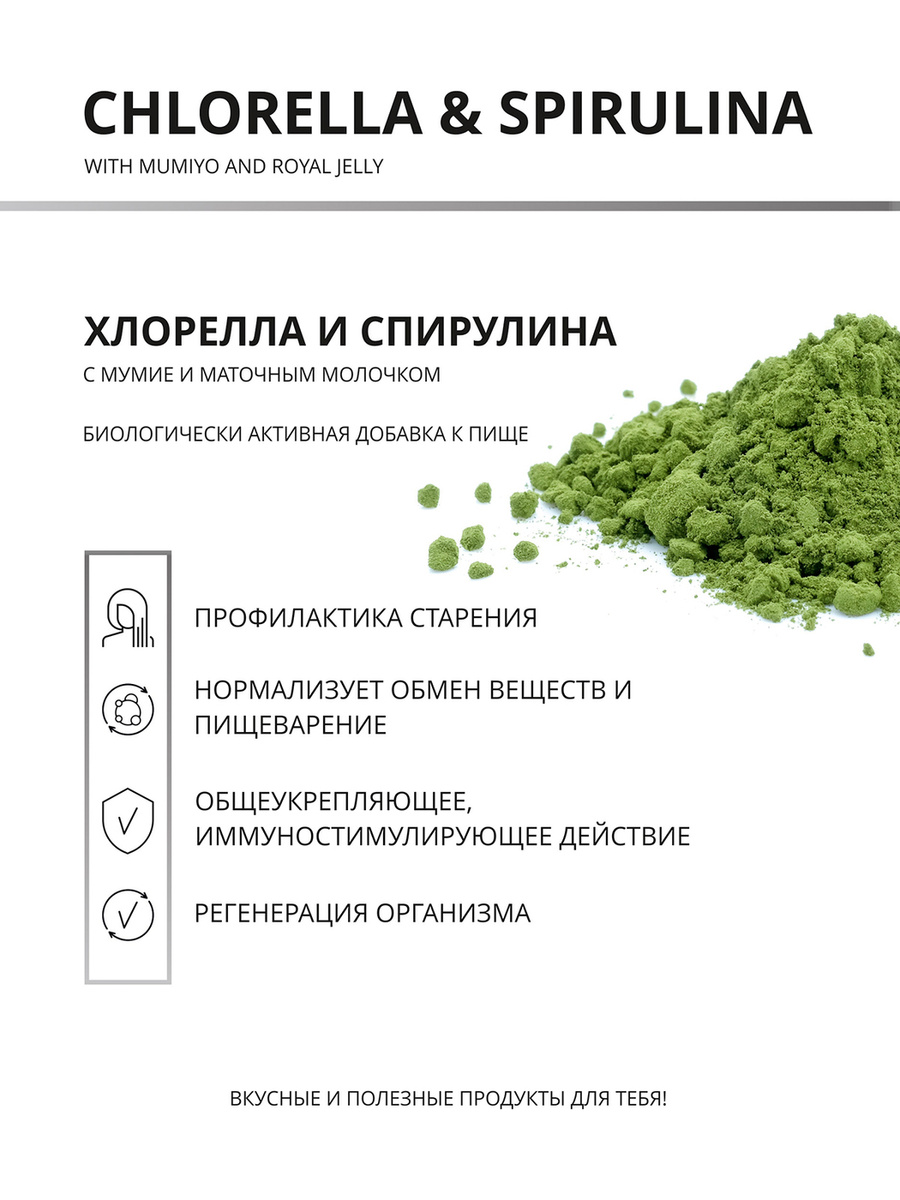 SUPERFOOD, Суперфуд, Спирулина + Хлорелла / chlorella, spirulina & royal jelly (курс на 30 дней)