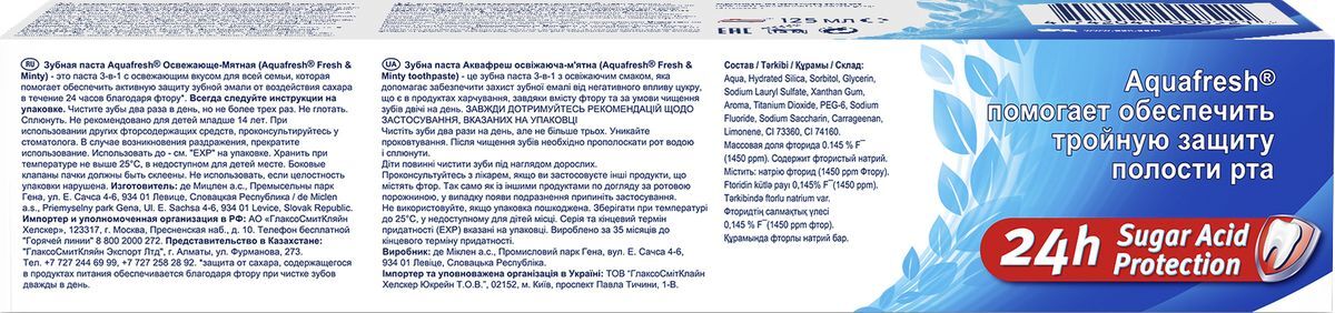 Способ применения:Небольшое количество зубной пасты нанести на зубную щетку. Чистить зубы круговыми движениями, одновременно аккуратно массируя десны. Полость рта ополоснуть небольшим количеством воды, задерживая ее на 20-30 секунд. Не рекомендовано для детей младше 14 лет.