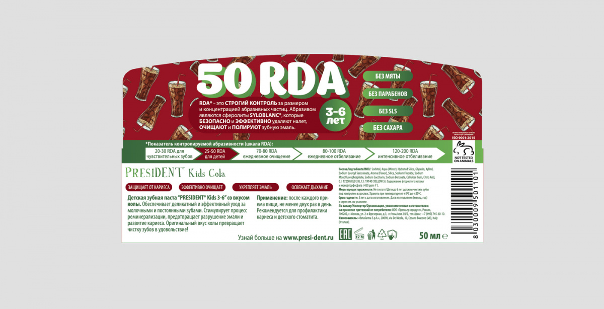 - Состав: Sorbitol, Hydrated Silica, Glycerin, Aqua, Xylitol, Aroma, Sodium Lauroyl Sarcosinate, Cellulose Gum, Sodium Benzoate, Calendula Officinalis Extract, Potassium Sorbate, Calcium Pantothenate, Sodium Saccharin, Citric Acid, o-Cymen-5-ol, Limonene, CI 16035, CI 19140.
