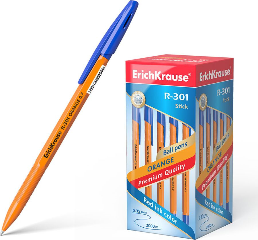 Ручка шариковая Erich Krause R-301 Orange Stick 0.7, 43194, цвет чернил: синий, 50 шт