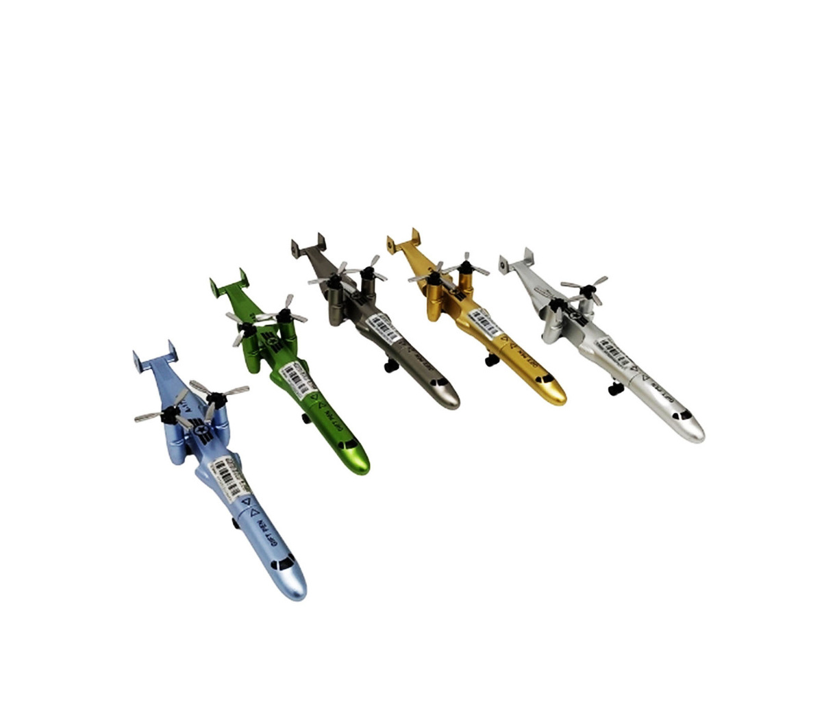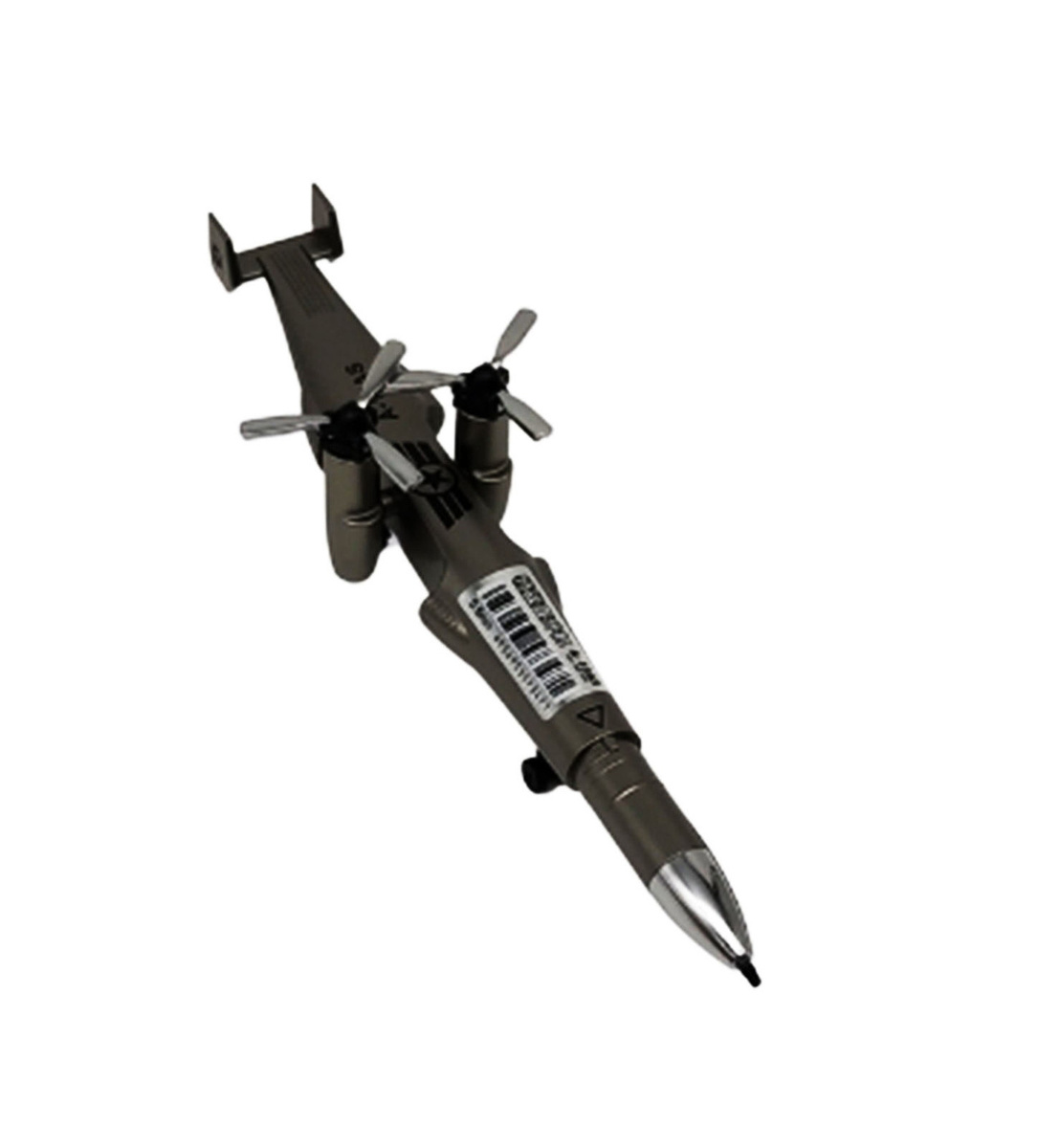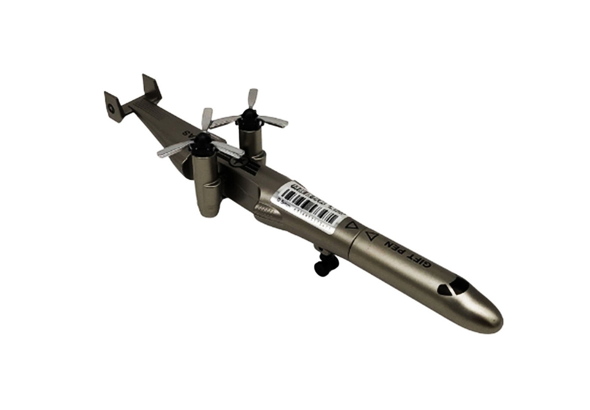Ручка синяя "Самолет-лайнер" с шасси и вращающимися двигателями (темно-серая)