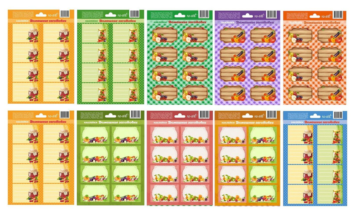 Набор наклеек на банки и посуду ND Play "Домашние заготовки" 10 видов по 8 шт (21x30 см)