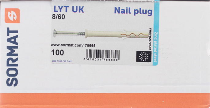 Дюбель-гвоздь Sormat 8x60 мм потайная манжета нейлон (100 шт.)