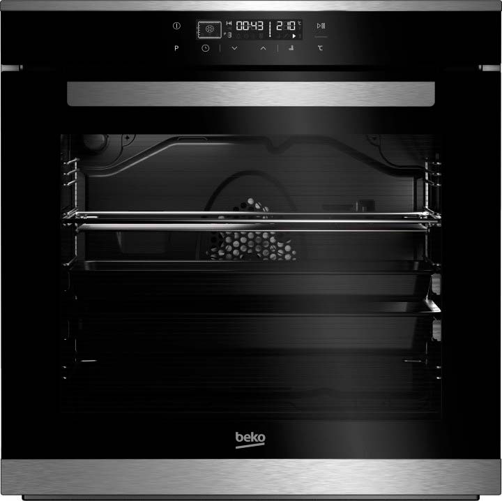 Электрический духовой шкаф, объем 71 л, мощность подключения 3100 Вт, класс энергопотребления A+, максимальная температура 280 °С, способ очистки пиролиз, переключатели сенсорные, количество стекол 4, гриль электрический, телескопические направляющие, дверца духовки откидная, дисплей, таймер с отключением, защитное отключение, защита от детей, ширина ниши для встраивания 56 см.