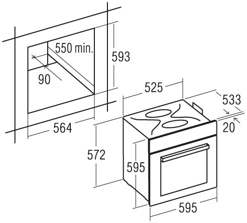 Электрический духовой шкаф, объем 59 л, мощность подключения 2400 Вт, класс энергопотребления A, максимальная температура 250 °С, способ очистки каталитическая, переключатели поворотные, количество стекол 2, гриль электрический, дверца духовки откидная, таймер звуковой, ширина ниши для встраивания 56.4 см.