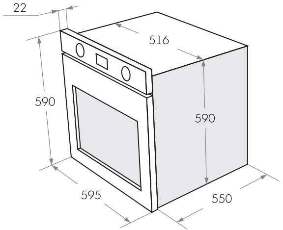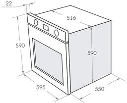 Электрический духовой шкаф, объем 57 л, мощность подключения 2350 Вт, класс энергопотребления A, максимальная температура 250 °С, способ очистки эмаль легкой очистки, переключатели поворотные, количество стекол 2, гриль электрический, дверца духовки откидная, таймер звуковой, ширина ниши для встраивания 60 см.