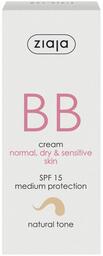 BB Крем для лица Ziaja, для нормальной, сухой и чувствительной кожи, натуральный тон SPF15, 50 мл