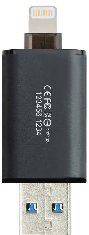 32 Гб; USB 3.1/Lightning; с колпачком; материал: металл; запись 30 Мб/с; чтение 130 Мб/с.