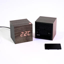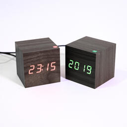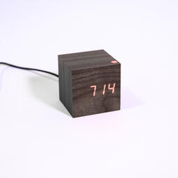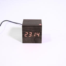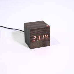 Деревянные часы кубик Wooden Clock коричневые с красным дисплеем