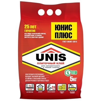 Плиточный клей цементный Юнис Плюс 5 кг